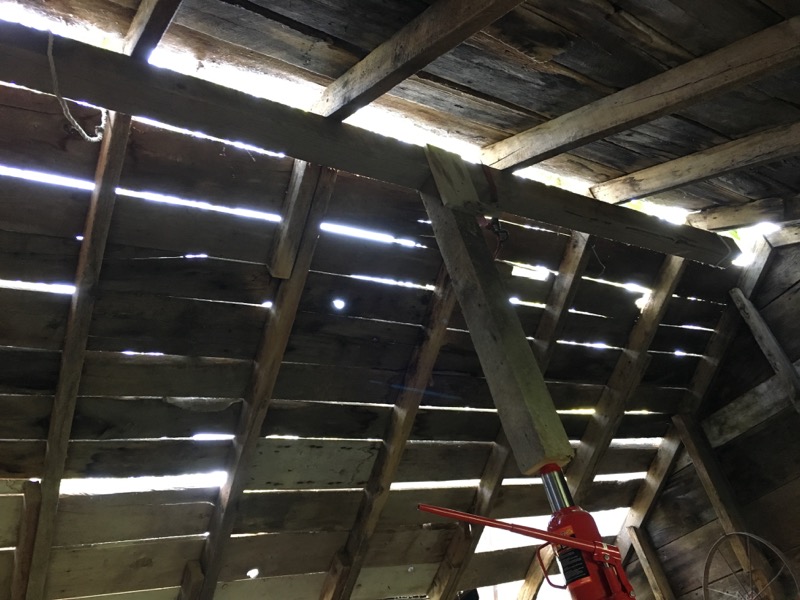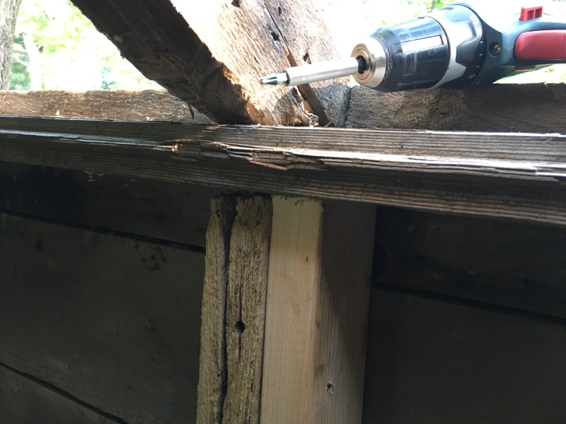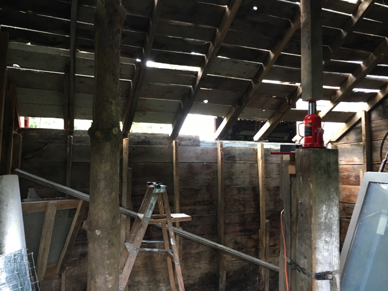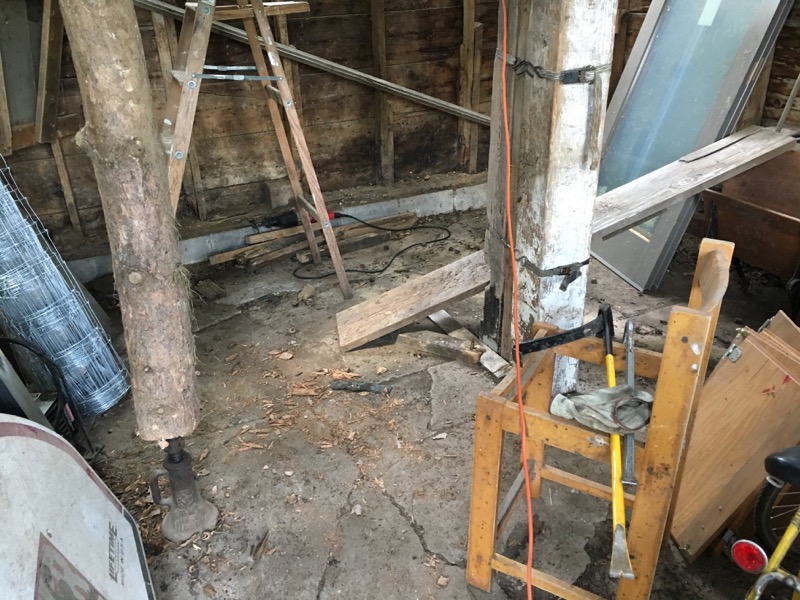 I jacked up the roof so the building wouldn't fall on me as I tore out (cut, hacked, hammered and pulled) the old rotted sill plate.