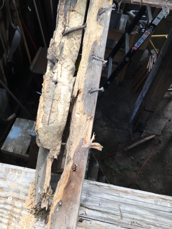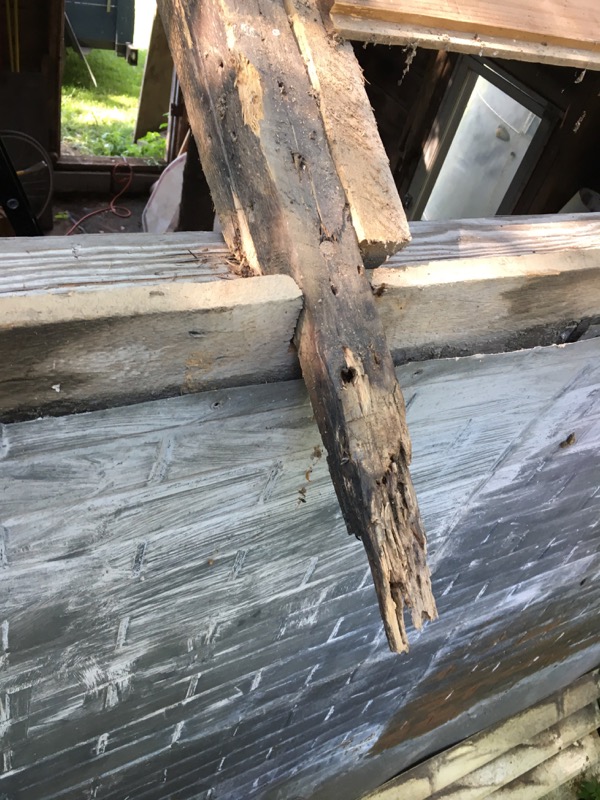 Some of the rafters are almost totally gone due to rot and insect (and animal) excavation.