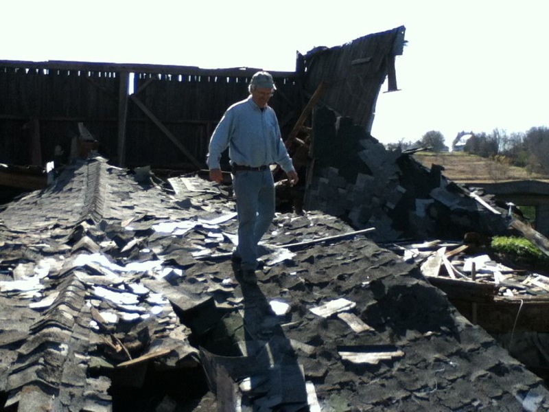 When the roof fell it broke up into sections. The clean up involved pulling a section to the edge of the barn and separating shingles, roof boards, and rafters. This is very time consuming work and reminded me of cleaning up after a bad storm.