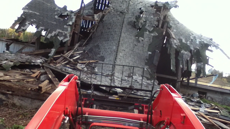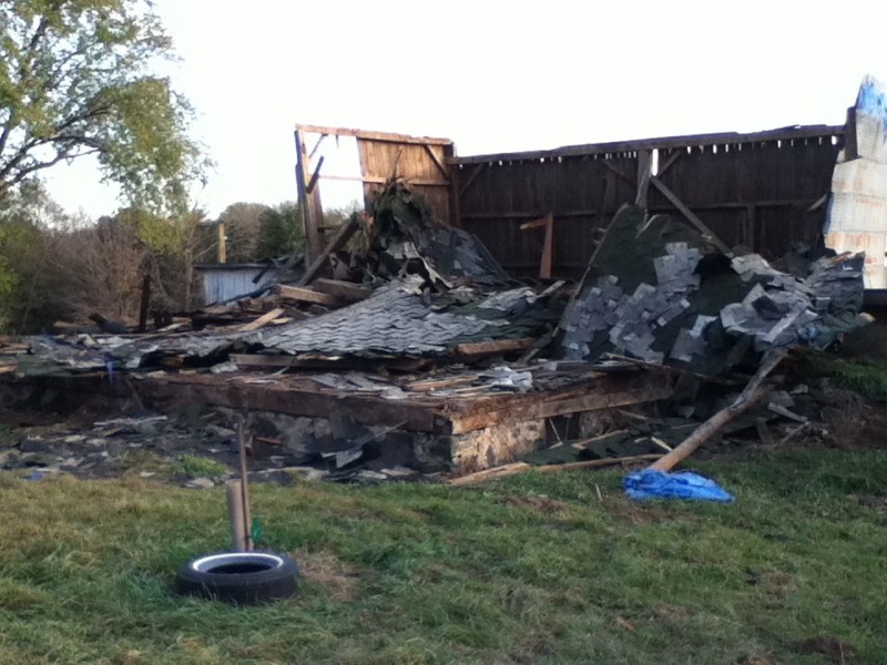 Now that the barn (roof) is mostly down on the 'ground' I need to tackle the clean up. This is both a safety concern - lest I get caught in the rubble and are unable to avoid some remaining 'widow maker'. It is also a concern I not cause further damage to the boards and beams that are now 'down' and available for salvage.
