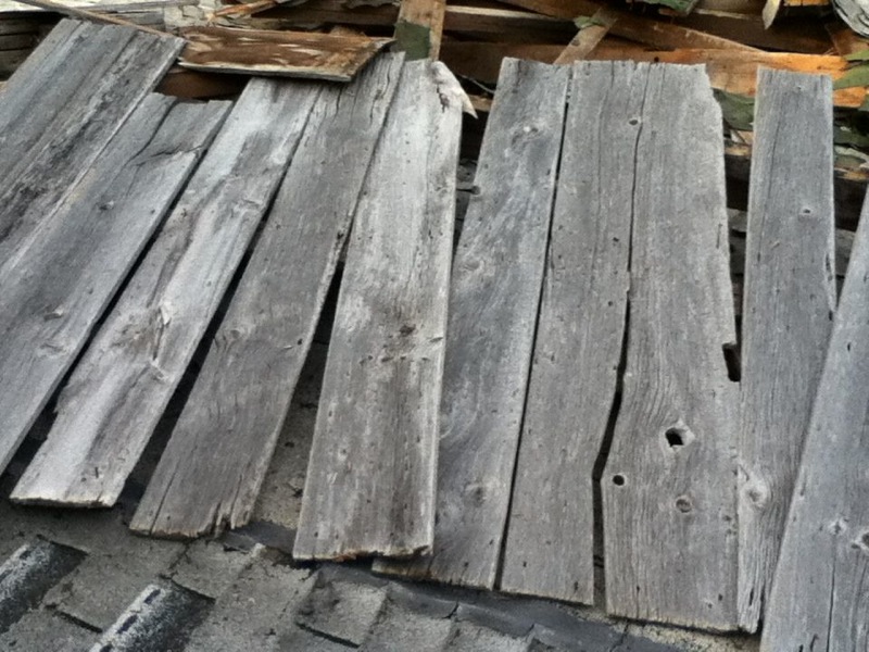 The wood from the old roof was divided into three classes based on condition of the boards and rafters: 1- good enough for re-use; 2 - good enough for firewood; and 3 - good enough for mulch.