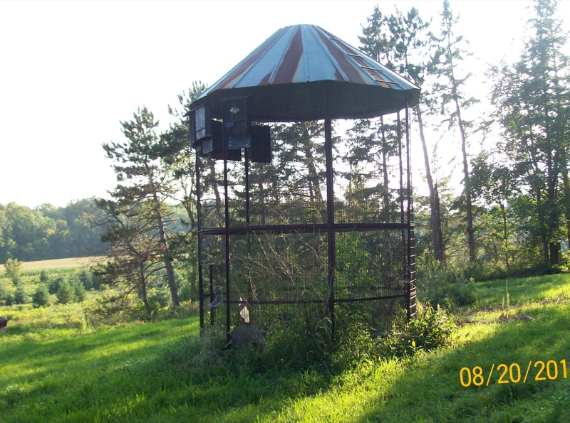 May 15, 2002: I hung 8 bat houses on an old corn crib at the farm. I built all of these houses because I felt guilty about evicting all the bats from the farm house. There were hundreds in that house and I thought these houses would accommodate most of them.
