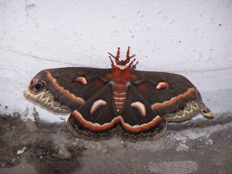 I stumbled upon your web site while investigating which moth had laid some eggs in the garage next to my apartment. I had taken a picture of the moth (see attached) and it appears to me to be a Cecropia Moth. I noticed it laid a string of eggs on a cement pole in the garage. I wanted to try to relocate the eggs but I saw on your site that the eggs are connected by a very sticky substance. I wasn't sure if it would damage them by moving them. They are right by the ground where the cleaner comes by and I am just worried they will be swept away and killed. 10 feet in any direction and it would have been in the forest. I just feel bad for the eggs! Any advice?