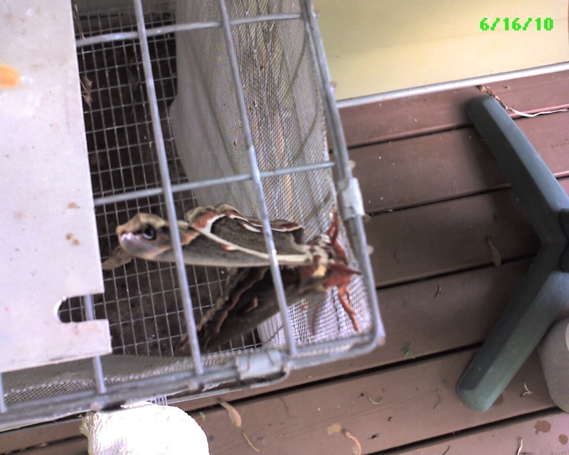 I placed her back in the cage to see if she would still attract a male. It may be to late in this 'early' season for males to be flying around in the wild.