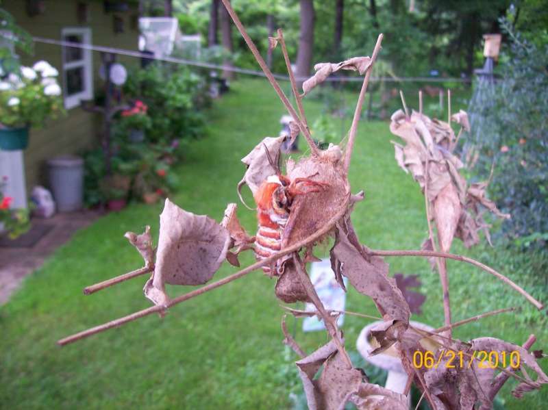 Due to my problems with earwigs last year; eating all the young caterpillars in 3 out of 5 of my 'bags', I only had one female emerge. So this year may mark the first year in 11 years raising these moths, that I don't have any to raise.