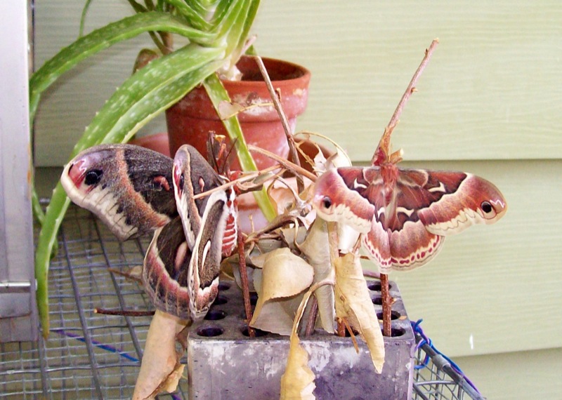 - June 8: TWO female cecropia emerge. Will the males they attract be the same ones I released? Alas, no males came (cold and rainy period? ) and the females died.