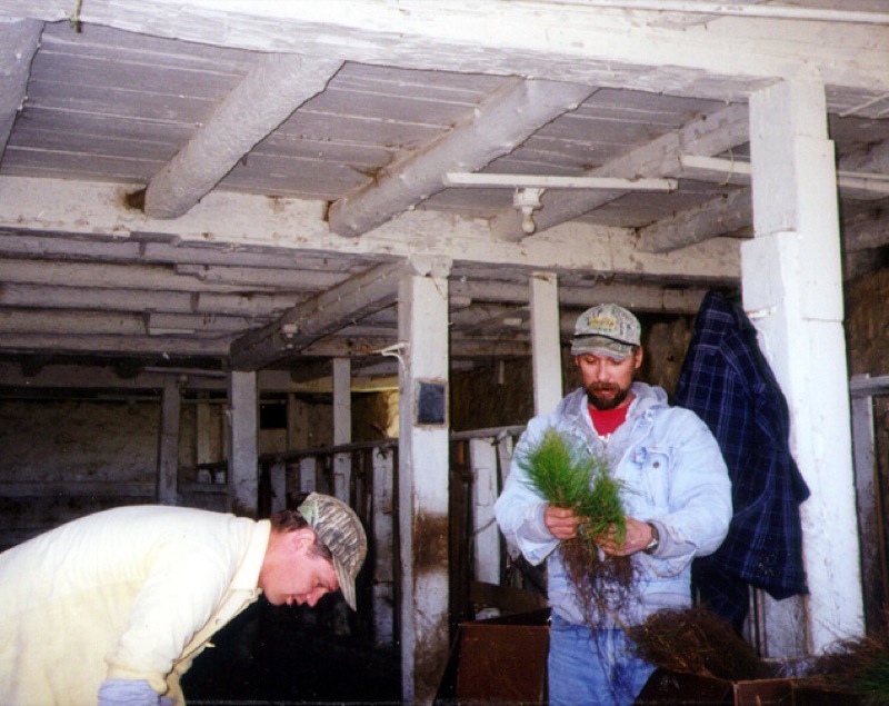 The second day it was just my family: Debi, Lance, Jordan and me. We worked the whole day - it stopped being fun and became quite tedious but we pressed on even as it started to rain. We finally got the last tree planted. We were soaking wet and covered with mud but the trees were in the ground. Never again would I order this many trees for one year. ( The consensus, at the time, was for me to never order another tree.)