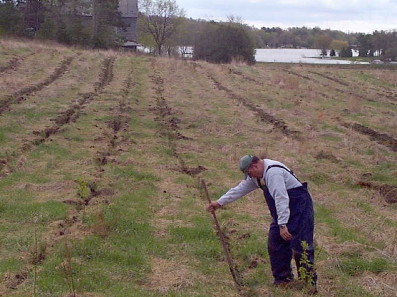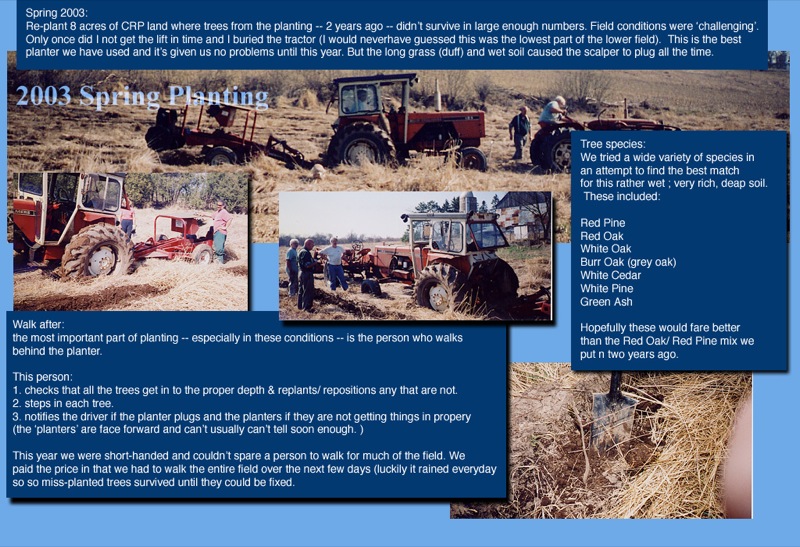 2003 is a year of replanting fields that haven't taken hold. The stand levels were so low from the first transplanting that we decided to just plant the whole area over again and try to go between the original rows so as not to dig up any trees that did survive.
