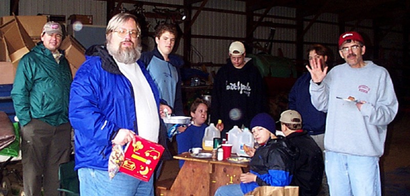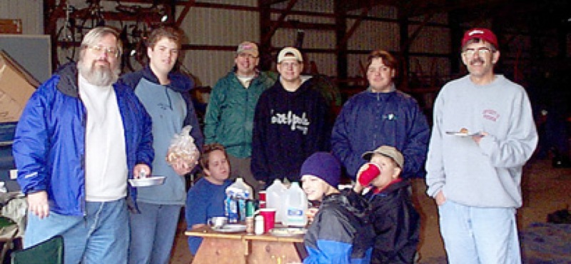 During the night it started to rain and it rained all the next day. Lucky we had a big shed that we could move everyone in to for eating and to dry off. It was too wet to do anything with the trees (the furrows were full of water) so everyone packed up and drove back to Madison.