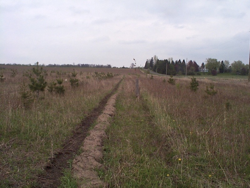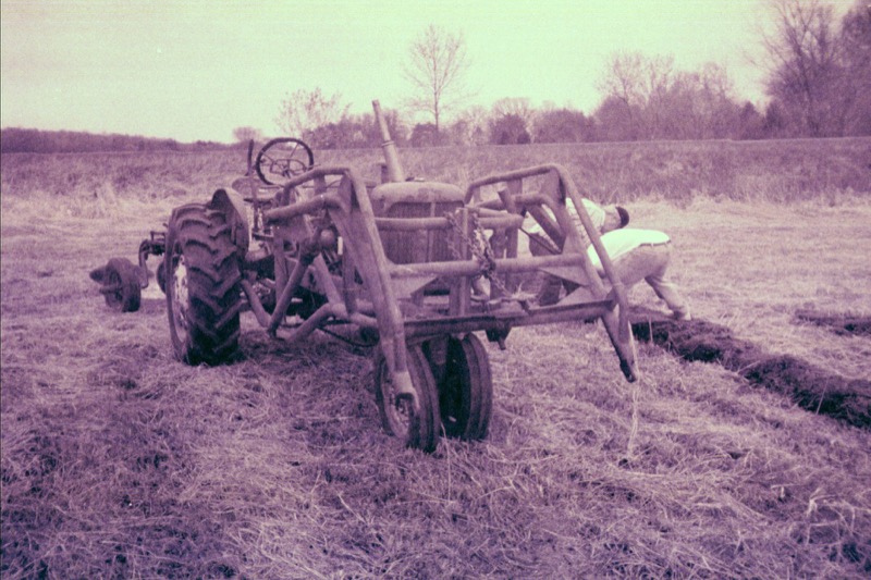Plowed 2-rows east of eastern row of first planting. This was a Spruce row - we planted spruce on outside rows that year because forester didn�t want us to plant spruce inside planting because they are too slow growing to �nurse� hardwood. I skipped �spruce row� and plowed 4th - liting over survivors. I skipped next pine row and plowed 4th furrow.