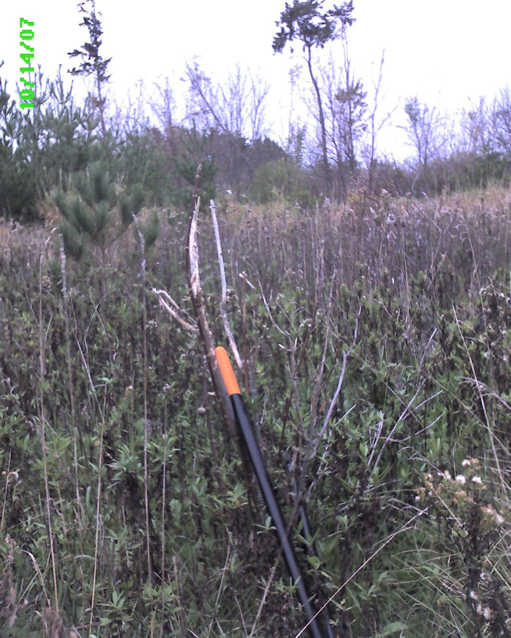 A buck has used this tree to rub the 'fuzz' on his horns. You'd think (hope) they'd use some big strong tree with a nice thick bark for such a job. But no.