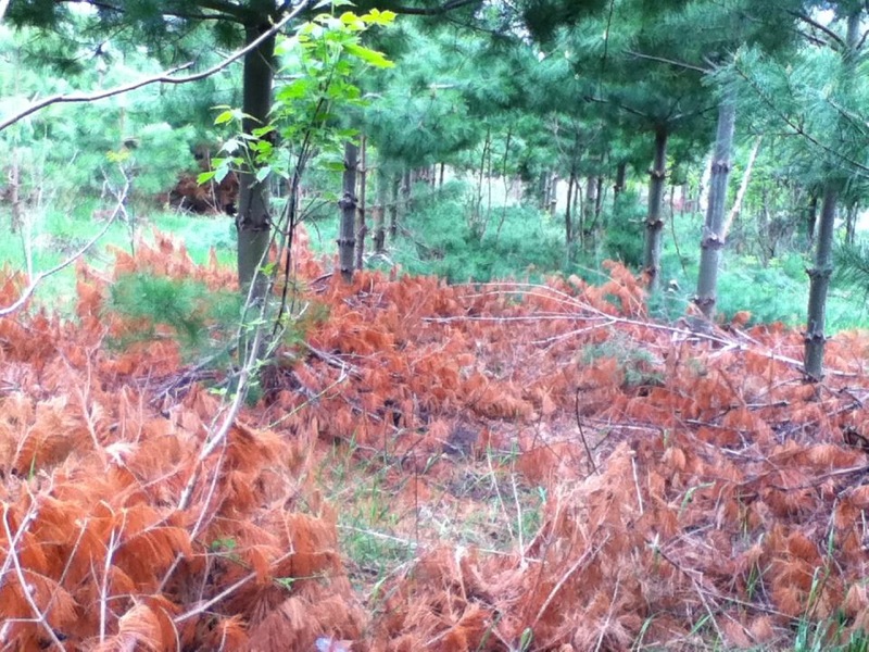 Last summer (2012) was warm and wet in Nortwestern Wisconsin (it escaped the severe drought that hit the southern part of the state and much of the country. It was another great growing season for these trees and they all put on at least a foot and a half of new growth. Over the past winter we have continued to prune up these evergreens and thin where they are already too crowded. We are knocking down any white pine that have been infected (totally) with blister rust and removing infected branches where the main tree still looks like it might recover (lesions and symptoms haven't reached the main trunk).