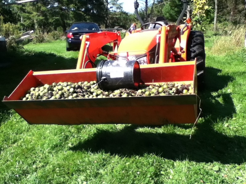 There was a huge crop of Walnuts this year in the old walnut stand in the yard. I gathered 4 or 5 bucket loads in the yard and dumped them out in various places in the woodlot where I needed more trees planted.