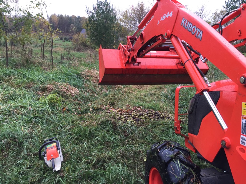 I dumped a couple buckets in the lower field and at least one up in the old spruce patch N. of the orchard.