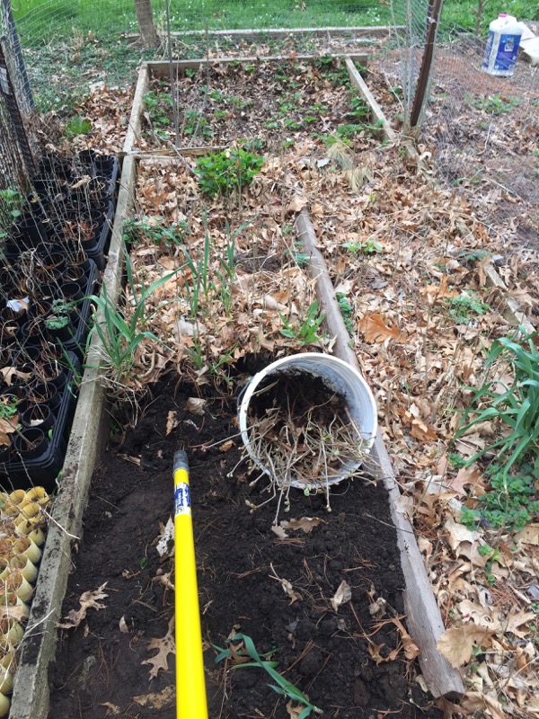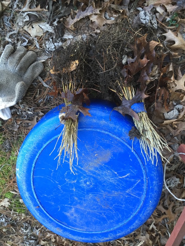 Digging up half my nursery bed of White Oak seedlings to transplant at the farm. I probably have about 200 seedlings that are going on their 3d season of growth.