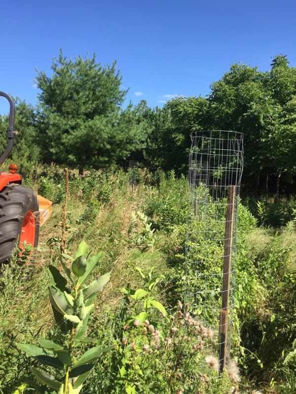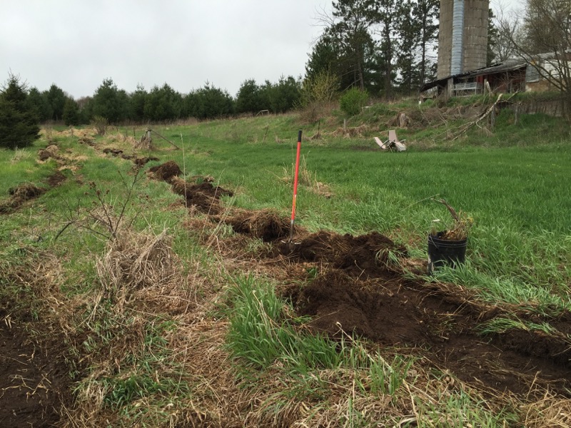 - Transplant White Oak, Honey Locust, and Hybrid Poplar sticks from personal nursery in Madison into blank areas on farm in Centuria and TRY to keep the deer from eating everything. .