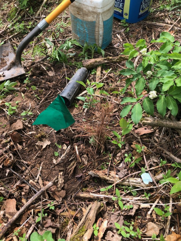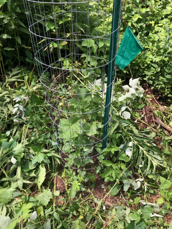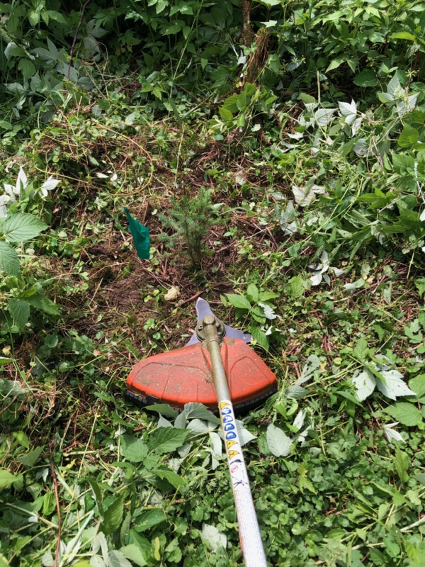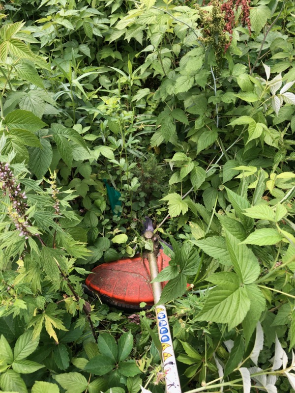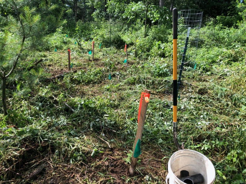 There is a healthy and vigorous understory of black raspberry which has moved in to this area of the forest. I am attempting to control it at least enough to let these young transplants survive