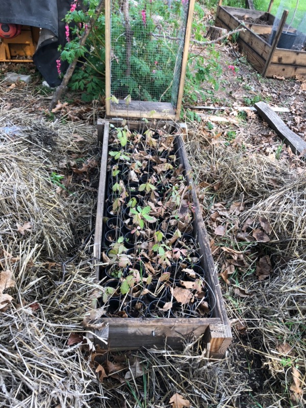 Previous attempts to overwinter Oak seedlings in D40 pots have failed either because of mice eating them or becuse of freeze/thaw cycles killing the root systems -- which had minimal protection inside these pots.