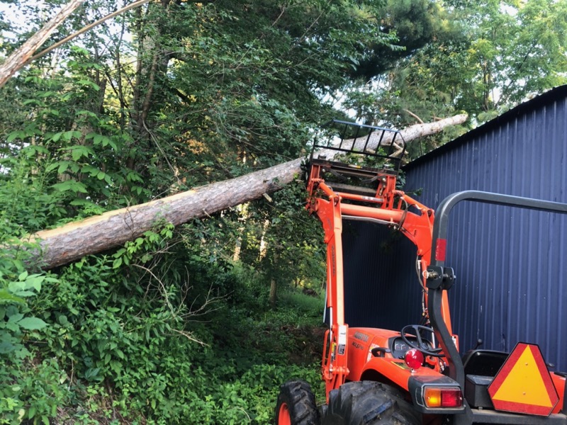 I called our tree trimmer to see if he could come and remove the tree. He was so busy with other storm damage that I got tired of waiting and moved some things so I could get the tractor under the tree.