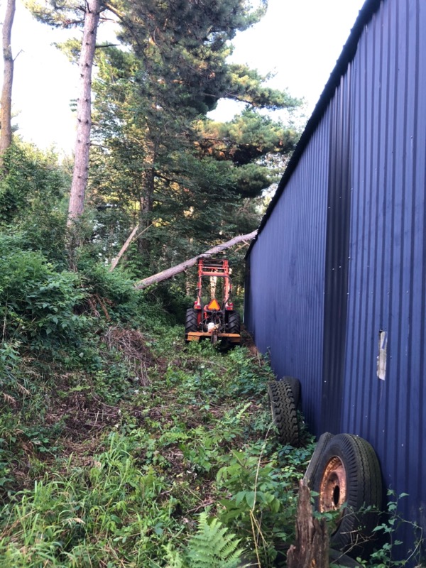 Red Pine has been leaning towards the tin shed for many years. We have all given our opinions as to how long it would stand.