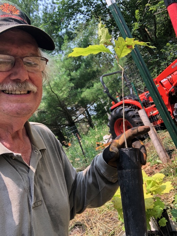 I transplanted these Red Oak seedlings throughout the Summer of 2024. These pictures are from November which is far later in the season than I usually plant. I am hoping that the tubes will protect the young tree from the rages of winter.