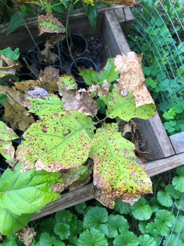 Some of the seedlings developed these spots and leaf necrosis towards the end of 2024 summer. I was planting out these seedlings most of the summer and this spotting didn't show up in the frame until late in the summer.