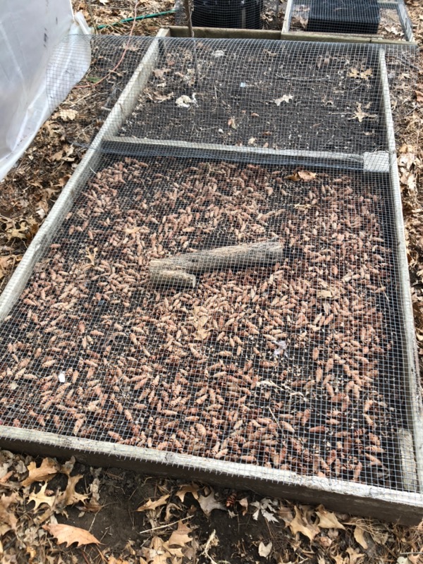 After I collected all the seed I wanted, I spread the seed cones in a seedbed frame in my garden.
