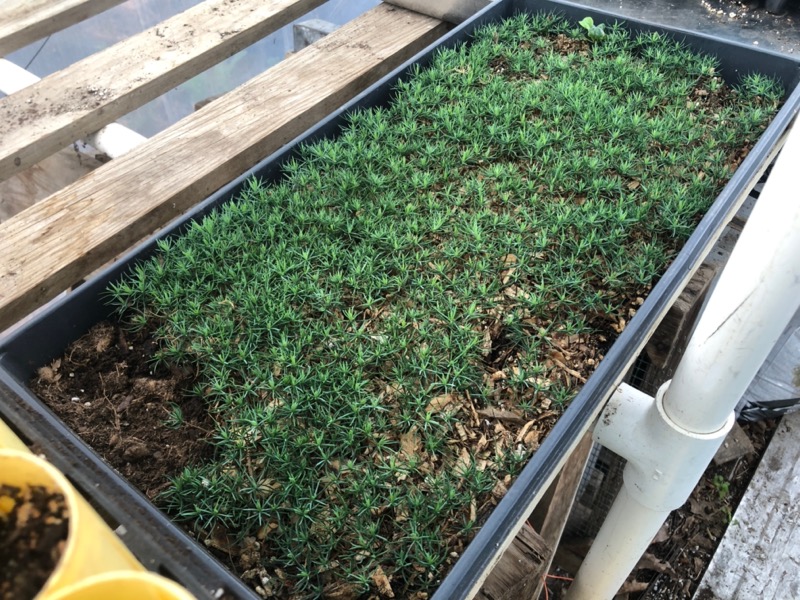 In early spring I spread this mix out on top of potting mix in a planter tray and put in window. Then moved to greenhouse.