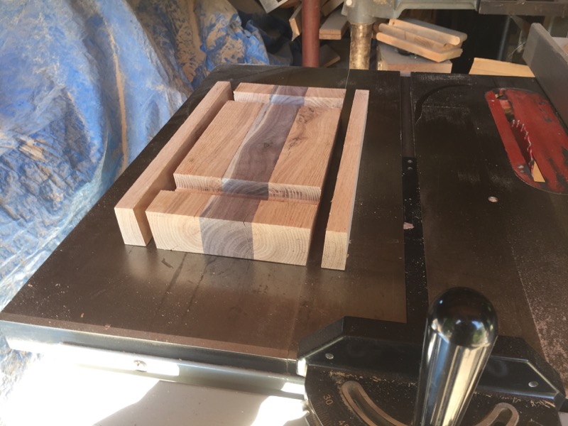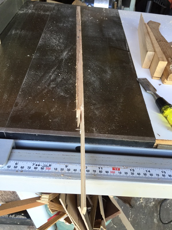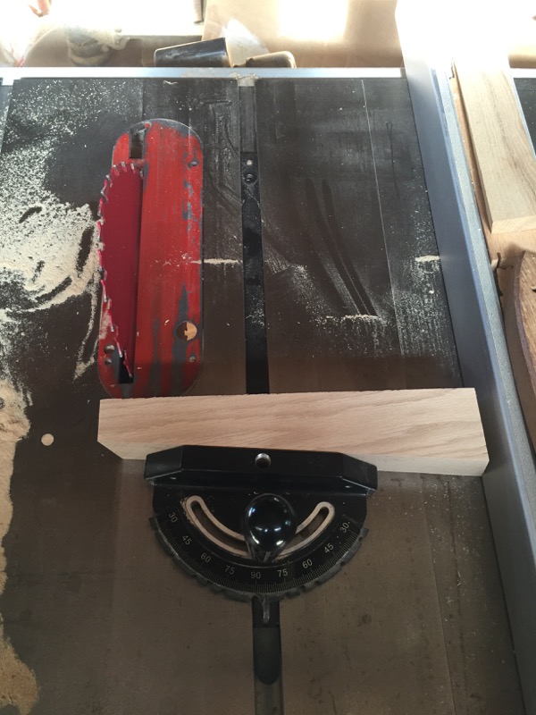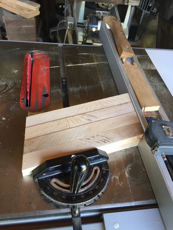 A second pass at 13 degree tilt left a strip with the required 8 degrees. This was then cut into 4 pieces of the proper length to fit into the mortise.