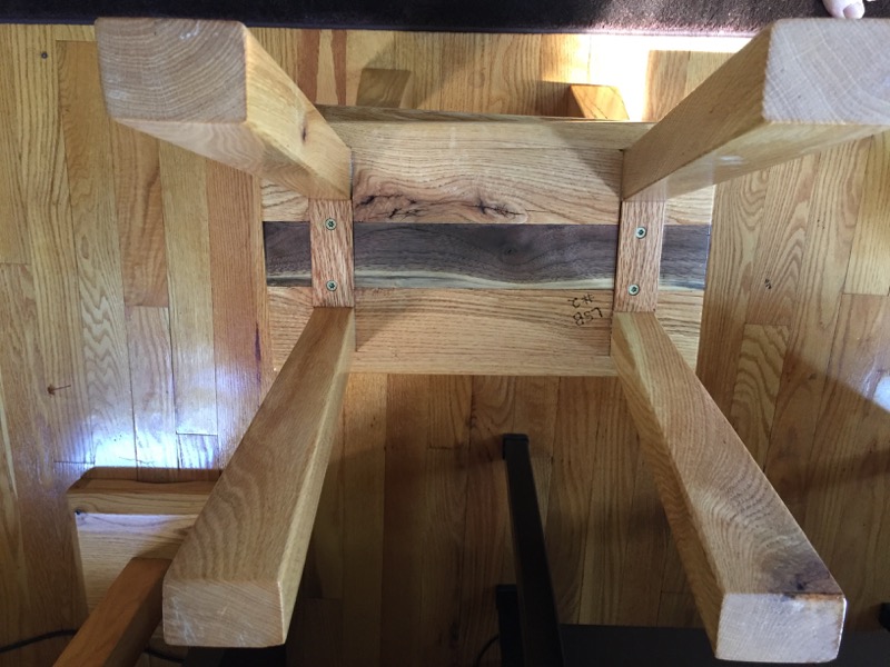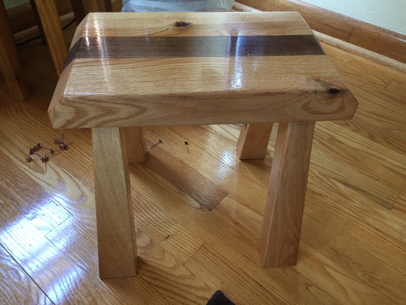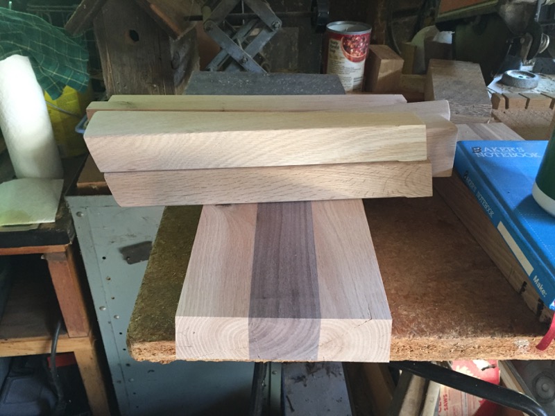 Much of stool #2 was cut out before Stool #1. I was planning on doing 2 at a time to save setup time and all that so I began with Red Oak and Black Walnut. (This has become a theme in my work). But I had trouble getting the legs right (re-cutting makes them shorter). So when I finally got it right and took what I'd learned to cut the second set of legs, I just kept going on the second stool until it was finished. Since it was the first one finished, I called it #1).