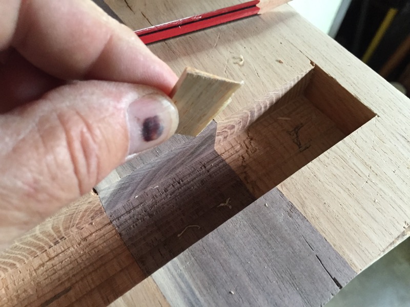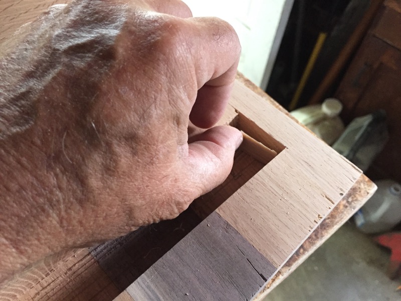 This is now ready for gluing the edge strips back on to form the outside of the mortise.