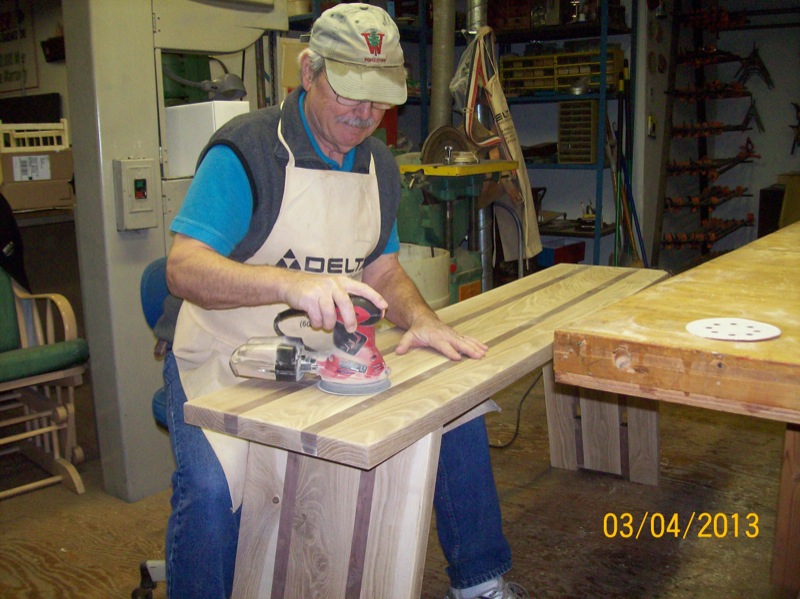 Careful sanding was also required to adjust the final fit of the tenons in the mortises. These needed to be snug but not too snug since the stability of the whole unit depended on these joints. Since the piece is held together by own weight the friction of these joints alone provides it with it's stiffness and stability -- no glue or fasteners.