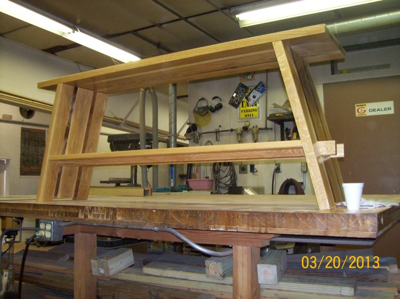 Okay, first assembly of finished stand/shelf unit. After a great deal of head scratching and shaking the cobwebs off of some old trig memories, I am very happy with how this has turned out.