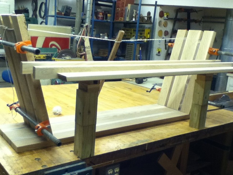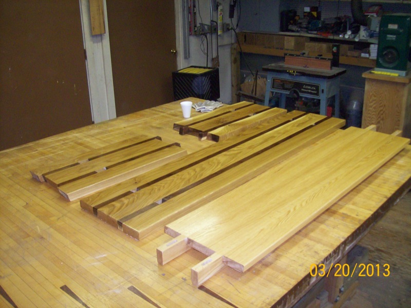So I took the plans and the suggestions and headed for the shop. I checked my supply of heavy boards and found some White Oak pieces. We cut this tree in the early summer of 2010. It lay in the woods until that fall when we gathered a load of logs for the mill. The boards were sawn into 1.5 inch thickness and stickered and stacked to air dry in the warm attic of my garage. I have never worked with White oak so I thought this might be a good time to start.