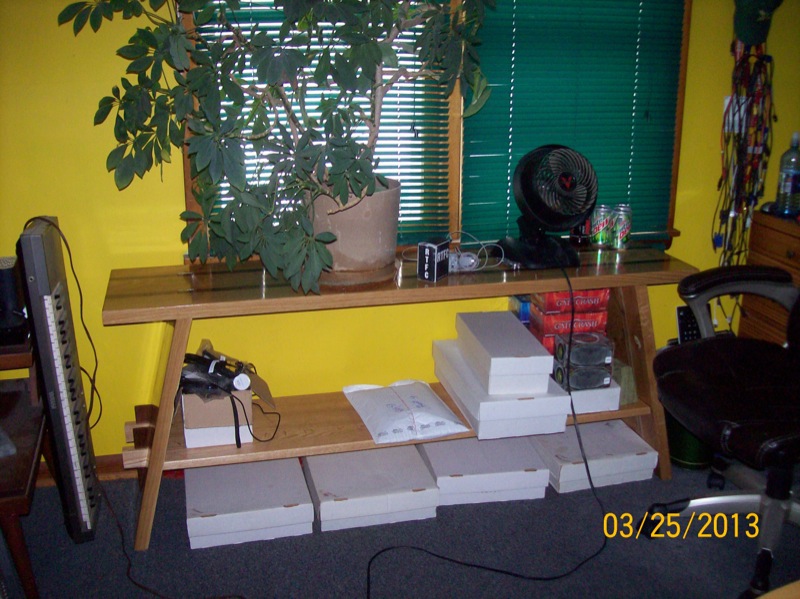 And here it is. The spec had it even with the window sill and strong enough for boxes of papers, "Magic" cards, etc.