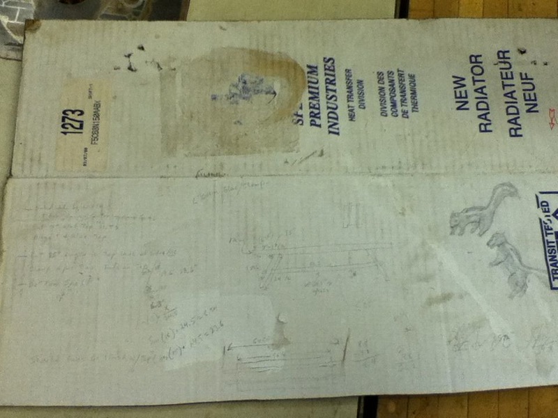 The design for this unit evolved as it was being built. Most of the calculations for angles and such were made on the only piece of paper I had available.