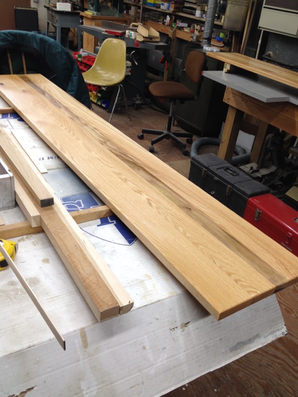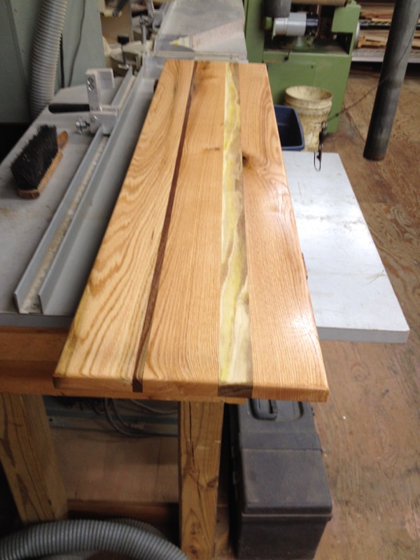 Finally completed more shelvs. This is a long shelf made from red oak and black walnut - both heartwood and sapwood.