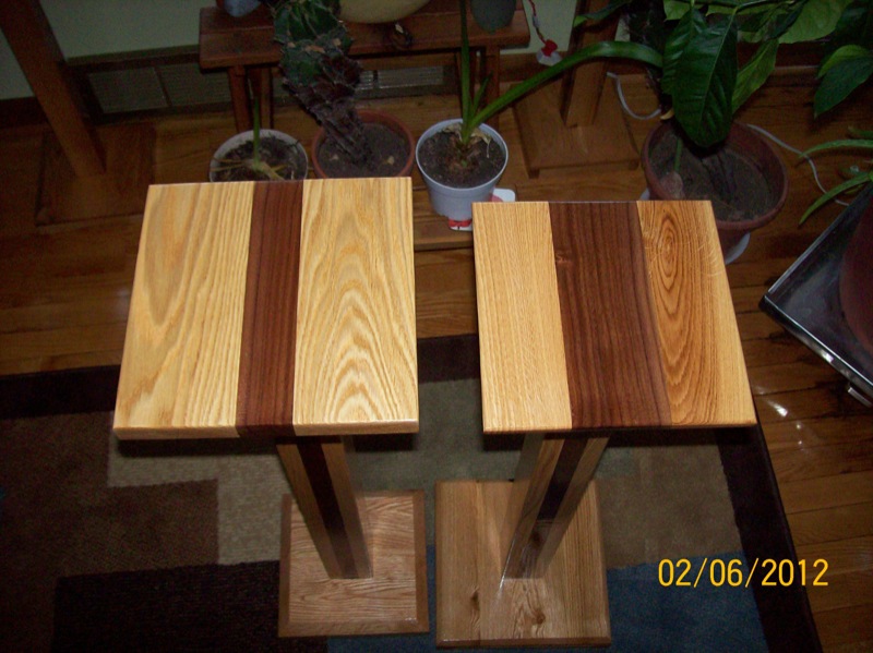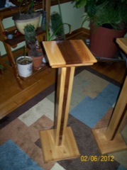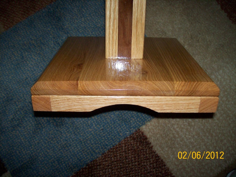 February 2012: Last fall I gave a stand to someone who had a thickly carpeted living room. The stand worked just fine but I could see that it could be a little tippy if there were kids or animals running around. This made me think of making the base a bit bigger than the top. The main reason for making this stand was to see if this would still look good or if I needed to make the top larger to match the base.
