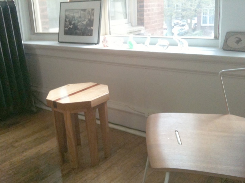 After building my first 7 stools, this is the first one I could bear to part with (See Stool #7). A house (apartment) warming gift for a close friend, Emily, who just moved to Chicago from New York City. She seemed happy to get it. I hope it serves her long and well.