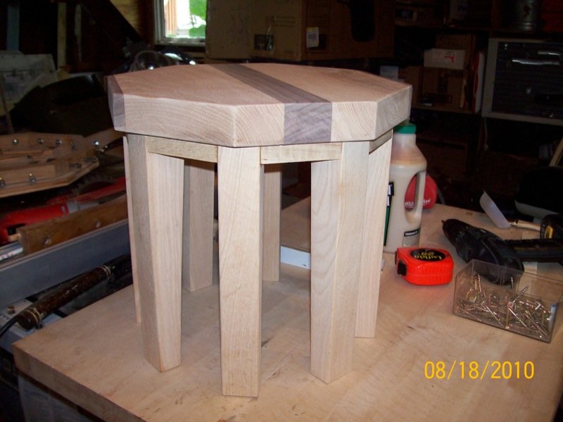 Side Note: The pieces for this stool were sitting in my workshop and ready assemble when I learned that I had bladder cancer. During the days after my first chemo treatment, I needed something to take my mind off the how crappy I felt and how scared I was about how much crappier I might feel as the hours passed and the anti-nausea drugs wore off. My mother always said that doing some repetitive task (like milking the cows or working the fields ) is a good way to focus your mind on the task and force your problems and concerns into the background. Assembling these stools requires careful attention to the process in order to get everything aligned and straight. After assembly, the multiple sanding passes (progressively finer grade paper) is tedious and time consuming. It turned out that this was an Ideal distraction from the side effects of chemo. The hours I spent working on these two stools (and cutting pieces for the next two) helped me get through the three months of chemo leading up to my operation.