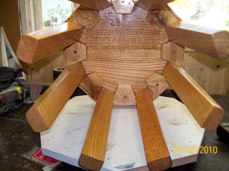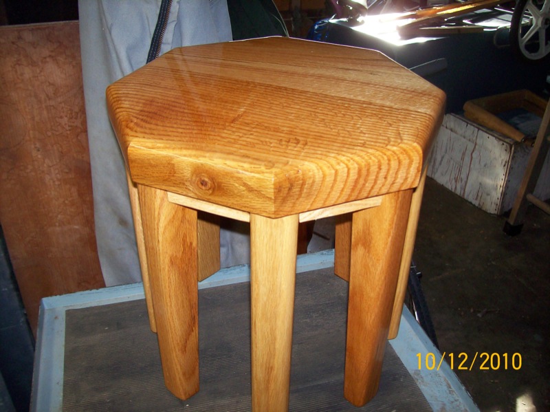 I spend as much time finishing the bottom side as the top because I think it as at least as interesting. For one thing, the legs appear to be splayed out (sort of an optical illusion). I could also envision young people playing with the stool upside down - I think I would if I were young (oh what the heck, I DO play with these upside down.
