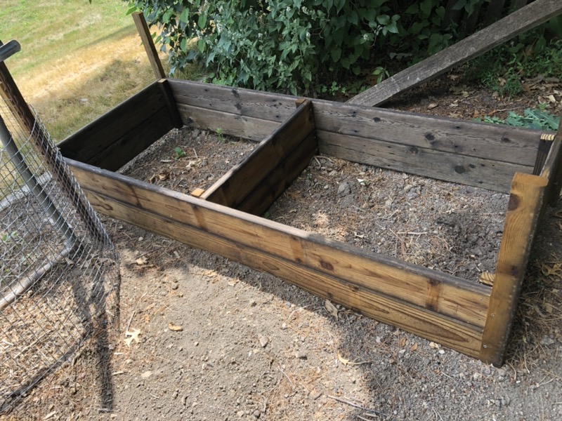 June 2023: Stakes cut from recycled deck boards.